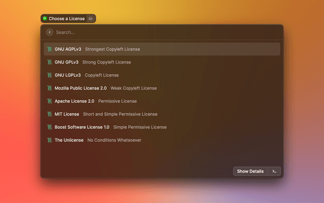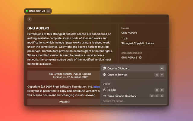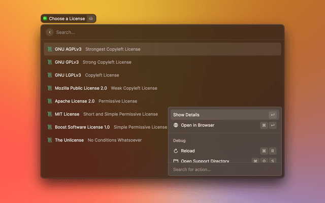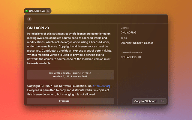 A Raycast extension for copying and pasting licenses for your open source projects.