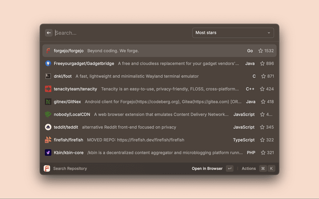 Using on websites built through Forgejo. Work with search repositories and get notifications