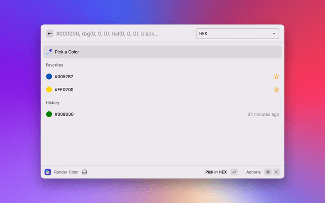 Available keywords to find commands: color, pick, eyedropper, pipette, render, render color, color utilities, color casket