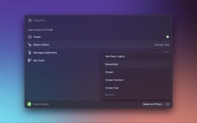 Control your Nanoleaf panels with Raycast! Unofficial extension.