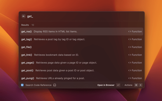 Search the WordPress code reference.