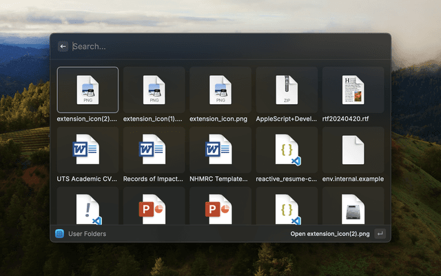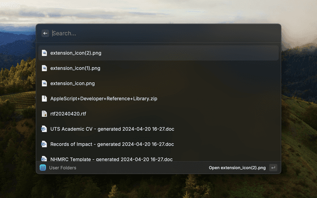 This extension provides instant access to open your Downloads, Documents, Desktop, and Projects folders through dedicated commands to take you there in Finder.