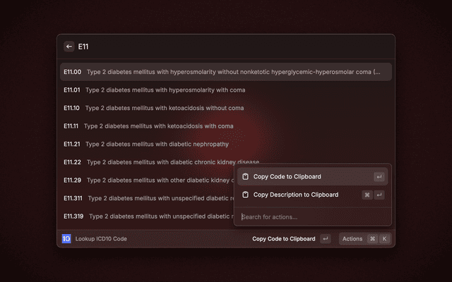 Shows matching ICD10 codes based on disease name input. Uses NLM's ICD10 API.