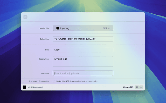 - Mint Assets: Mint a new NFT from an image, video, audio, or other media file.