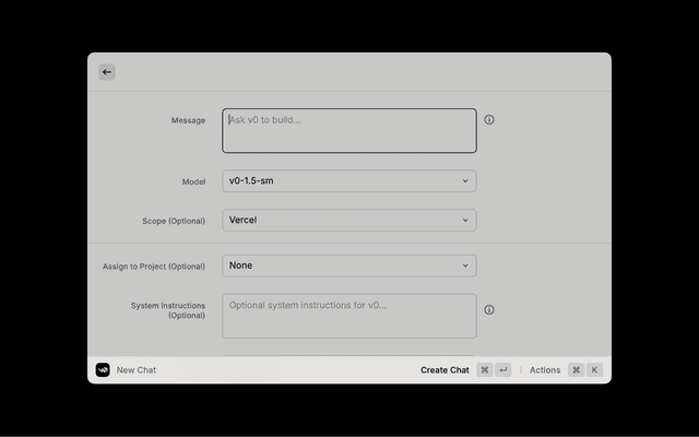 - Assign Project to Chat: Links an existing v0 project to a specific chat. Helps group conversations under a shared project context.