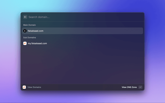 This is a Raycast extension for cPanel User level accounts (Admin and Reseller not supported). With this extension you can View Domains and their DNS Zones, Email Accounts and their Disk Usage.