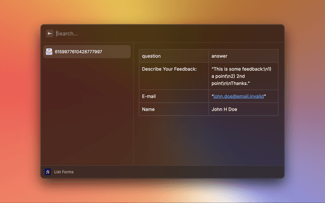 This is a Raycast extension for Jotform. With this extension you can view Forms and their Submissions.