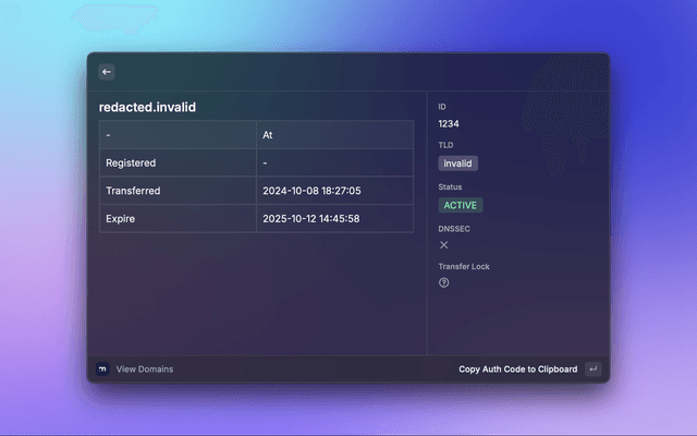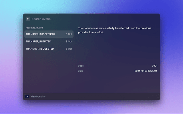This is a Raycast extension for Manotori. With this extension, you can view domains in your account with their details and events.